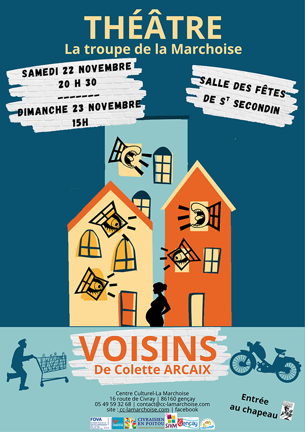 La troupe de théâtre adultes du Centre Culturel-La Marchoise vous présente sa nouvelle création "Voisins", une pièce tirée du livre de l’autrice Colette Arcaix.