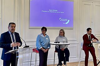 Alain PICHON, Président du Département, a présenté ses vœux aux forces vives et agents de la collectivité aux côtés des conseillers départementaux à l'Arena Futuroscope, lundi 5 janvier.